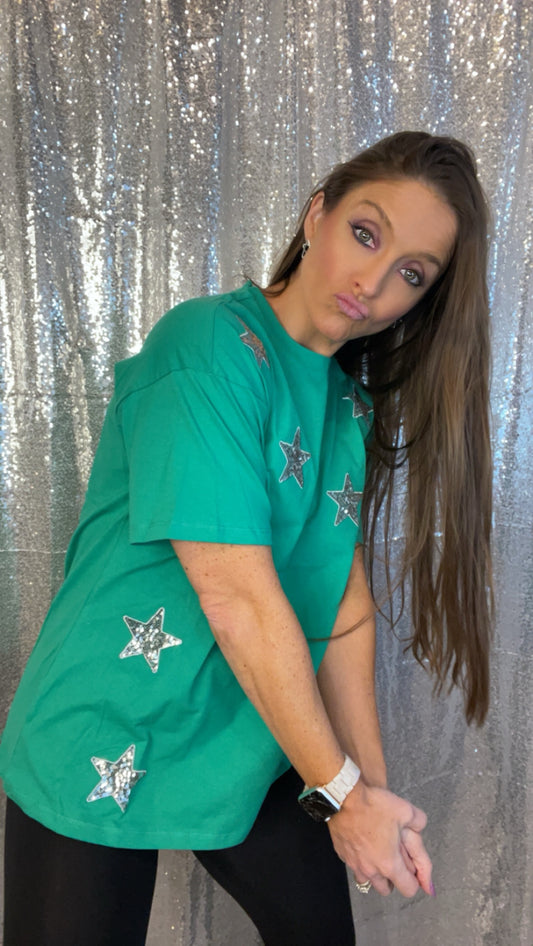 Green and Silver Sequin Star Top
