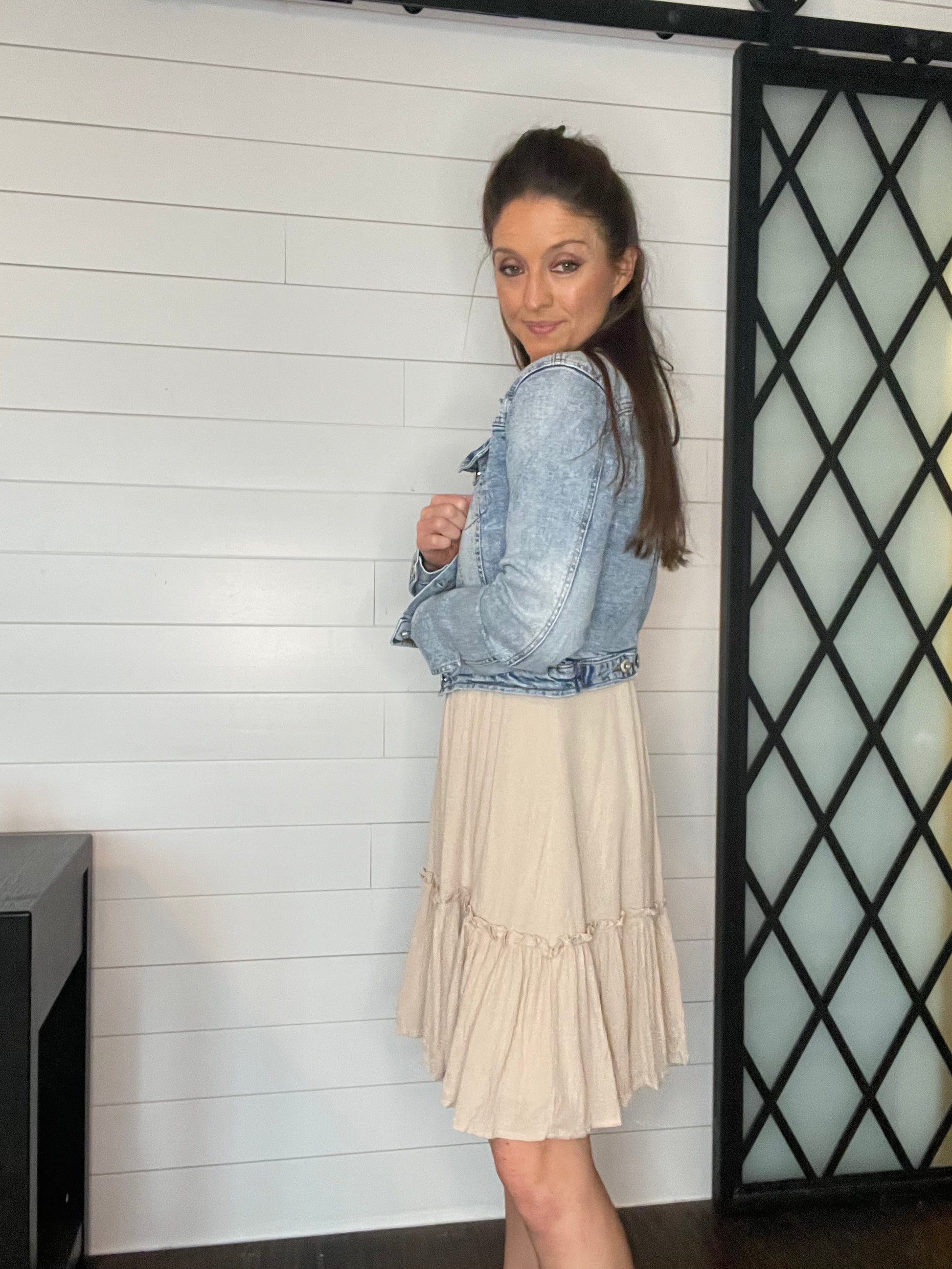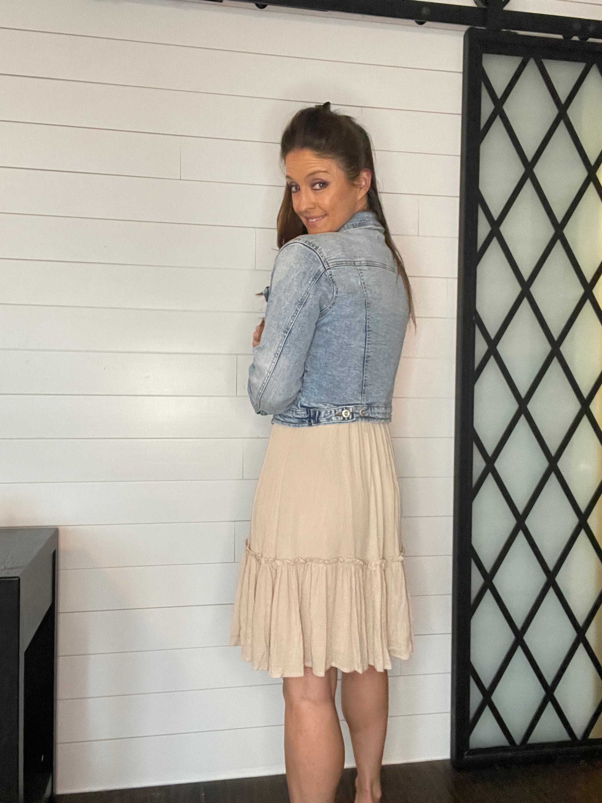 Last one! Over 30% off. This dress is simple, but girly and cute. It hugs and flows in the right places. Wear alone or with Glitter Dixie Denim!